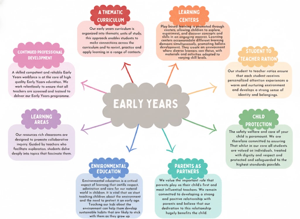 Our Early Years teachers are not only highly trained but also passionate about early childhood education. They foster emotional well-being and social skills through kindness, patience, and encouragement.